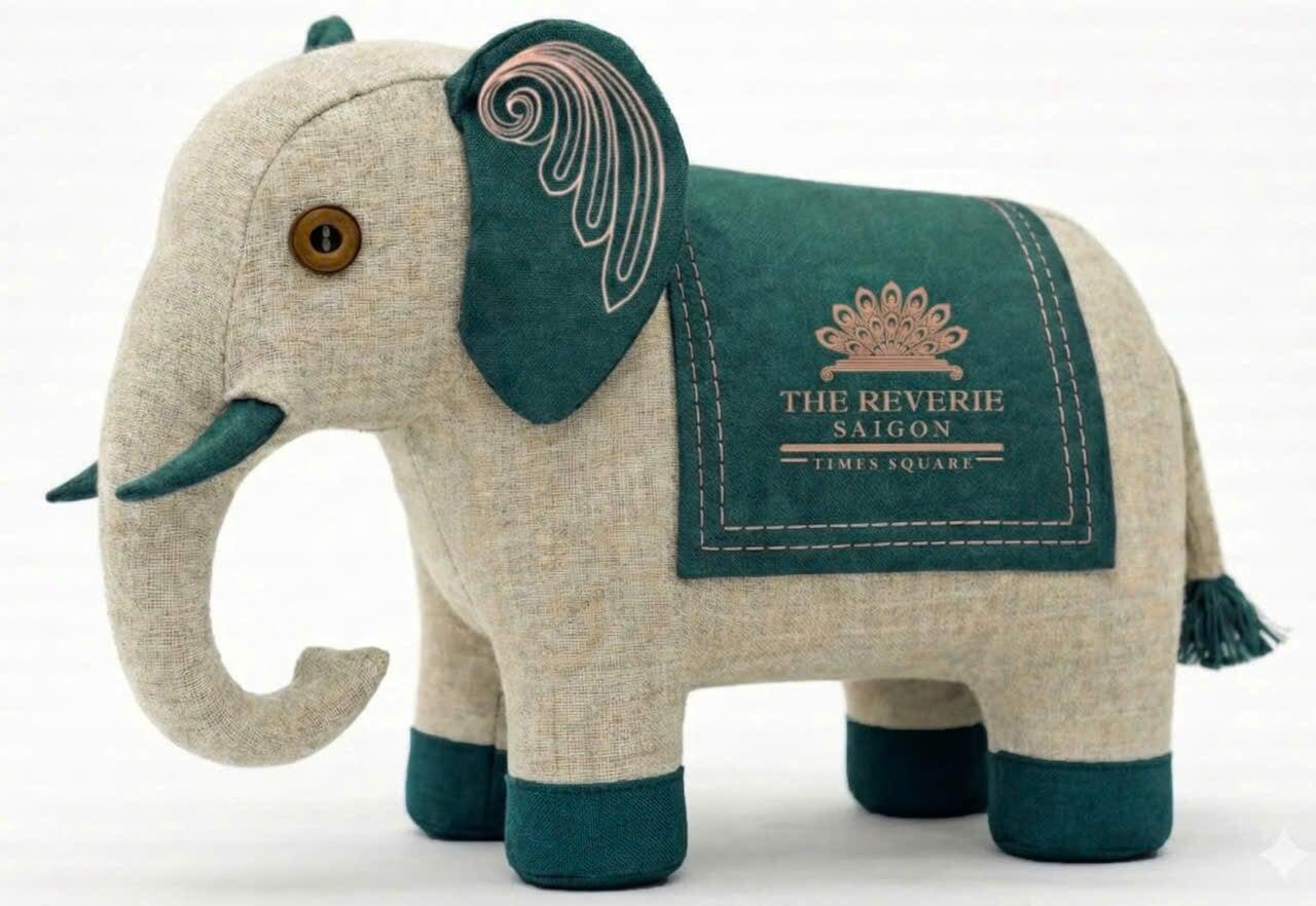 Điểm nhấn: Logo The Reverie Saigon được thêu sắc sảo trên thân voi, khẳng định dấu ấn của một biểu tượng kiến trúc hàng đầu Sài Gòn.