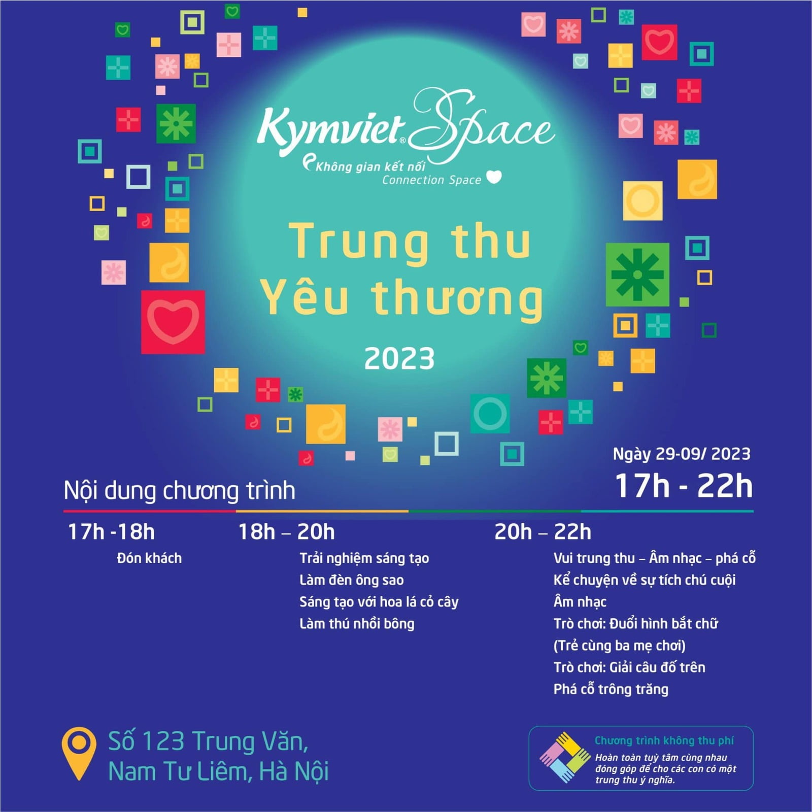 29.9 này đúng ngày rằm trung thu. KymViet tổ chức chương trình TRUNG THU YÊU THƯƠNG với nhiều trò chơi hấp dẫn và nhiều trải nghiệm thú vị dành cho các em bé.