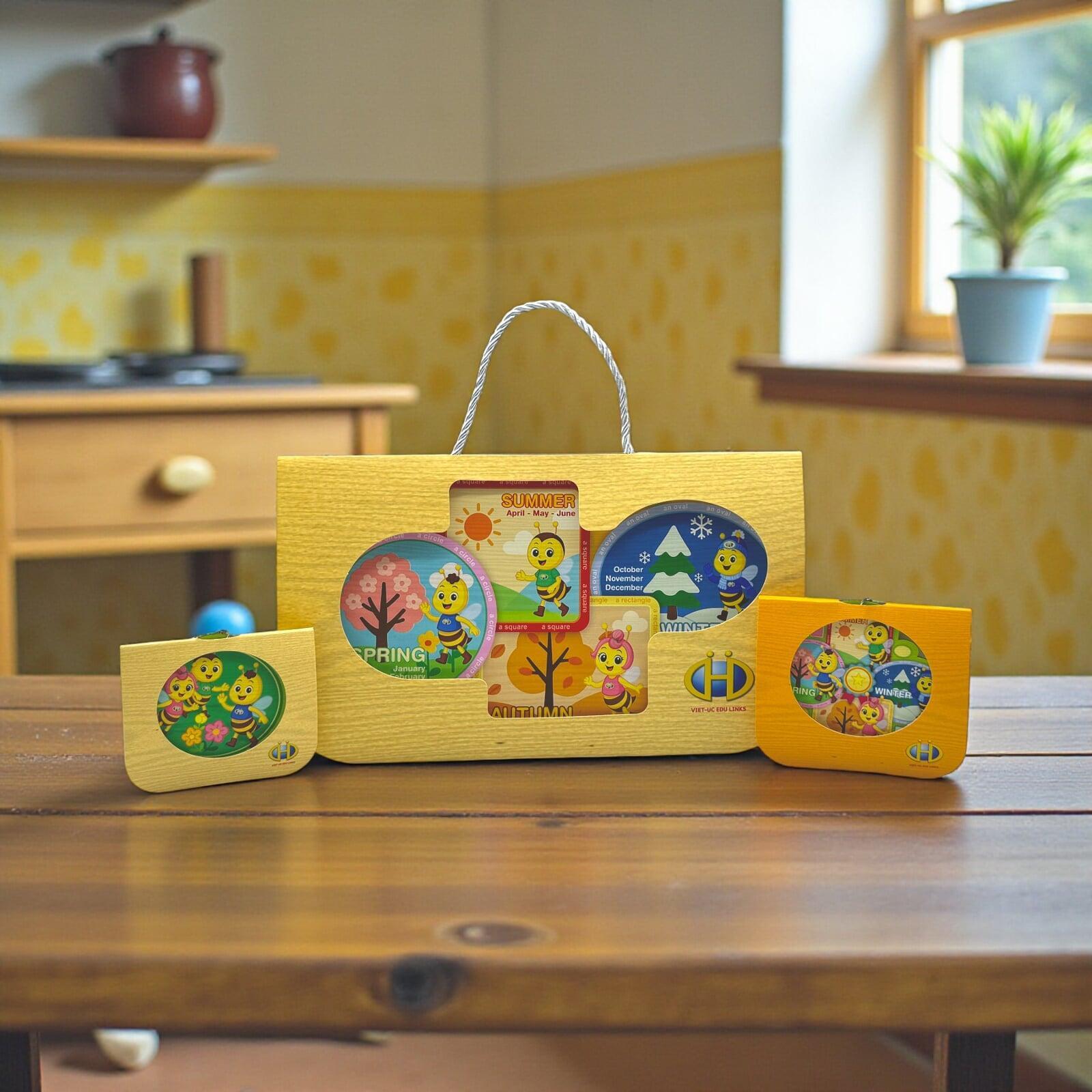 Những sản phẩm lần này là các móc khóa và thẻ treo trang trí được làm thủ công tỉ mỉ. Lấy cảm hứng từ linh vật chú ong chăm chỉ – biểu tượng của sự cần cù và trí tuệ, kết hợp cùng chủ đề 4 mùa (Xuân - Hạ - Thu - Đông) và các từ vựng tiếng Anh, bộ quà tặng vừa mang tính giáo dục cao, vừa gần gũi với lứa tuổi học trò.