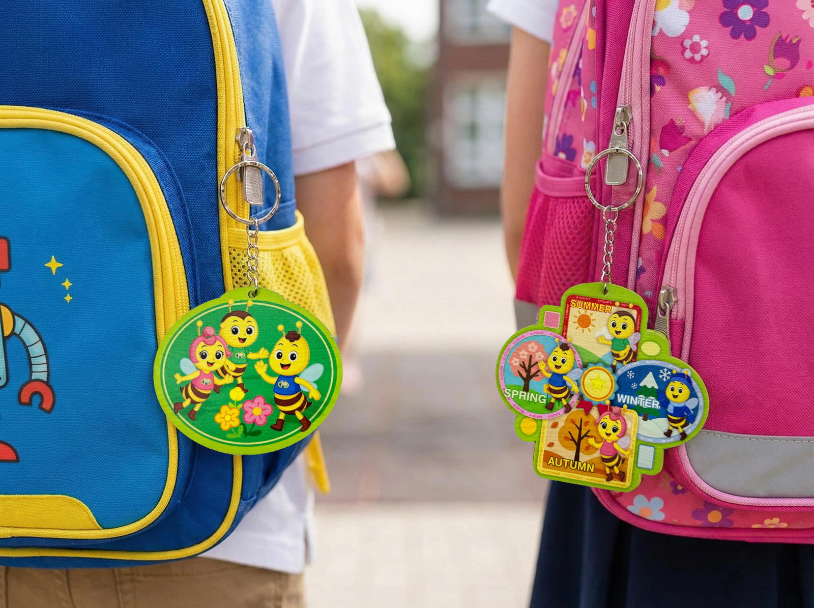 Sự tinh tế: Màu sắc tươi sáng, hình ảnh ngộ nghĩnh của những chú ong trên nền chất liệu thân thiện với môi trường, rất phù hợp để các em học sinh treo trang trí góc học tập hay làm điểm nhấn trên những chiếc ba lô tới trường.